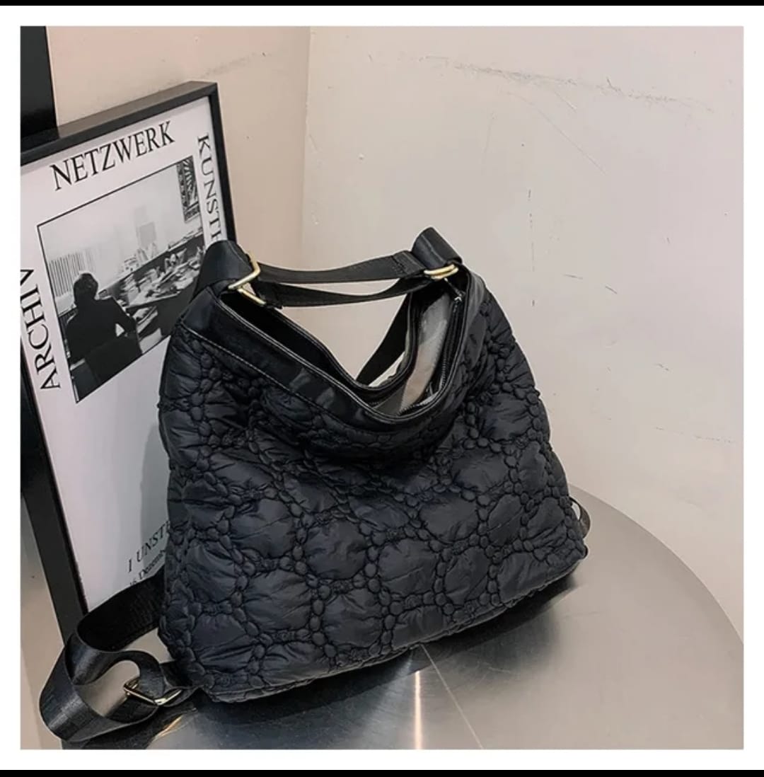 This High Quilted Tote/Crossbody Bag in Black is a stylish and versatile accessory that effortlessly combines functionality with fashion. Crafted with a high-quality quilted design, the bag offers a luxurious and textured look, making it a perfect complement to any outfit. Its spacious interior provides ample room for essentials, while the option to carry it as a tote or crossbody gives you ultimate flexibility. The crisp Black color adds a fresh, sophisticated touch, and the sleek hardware elevates the overall design.